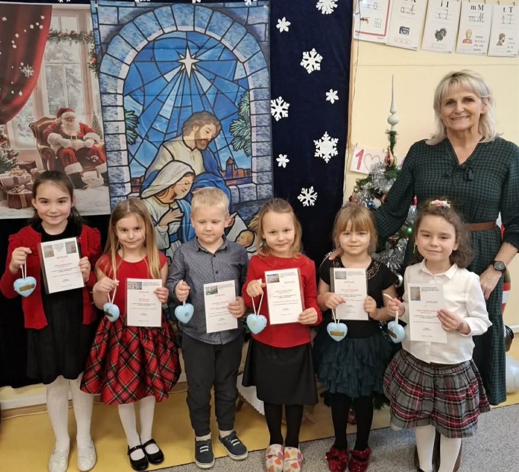 „Ewangelia św. Mateusza widziana oczami dziecka” 15 grudnia w naszym przedszkolu odbyło się rozstrzygnięcie konkursu plastycznego dla dzieci 6 – letnich. To konkurs DIECEZJALNY organizowany przez Wydział Katechetyczny Kurii Diecezjalnej Płockiej. Jesienią, na zajęciach religii -prowadzonych przez katechetę Beatę Sieklucką – dzieci dowiedziały się, że mogą wykonać pracę, w której przedstawią wydarzenie zapisane przez Ewangelistę Mateusza. Jedną z cech religijności dziecka przedszkolnego jest wyobraźnia. Sześciu dzielnych przedszkolaków z grupy Krasnoludków wykazało się swoim talentem plastycznym i wyobraźnią scen z życia Jezusa. W domu, pod okiem rodziców i najbliższej rodzin, ale ręką dziecka powstały piękne prace. Dzieci przedstawiły między innymi: Narodziny Jezusa, Ucieczkę do Egiptu, Chrzest w Jordanie, Dobrego Pasterza i Kazanie na Górze. Zgodnie z regulaminem komisja wyłoniła 2 prace, które będą reprezentowały nasze Przedszkole na konkursie w Płocku. Wyniki poznamy 6 lutego 2026r.