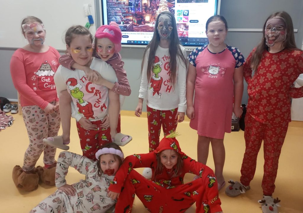W nocy z 5 na 6 grudnia klasa 4a nocowała w szkole, przeżywając wyjątkową i długo wyczekiwaną przygodę. Uczniowie przynieśli śpiwory, gry i przekąski, a w sali szybko zrobiło się przytulnie i radośnie. Wieczór rozpoczął się od zabaw integracyjnych oraz wspólnego oglądania filmu. Po zabawie przyszedł czas na rozmowy, planszówki i przygotowanie do snu. Rano wszyscy zgodnie stwierdzili, że była to jedna z najlepszych szkolnych przygód.
