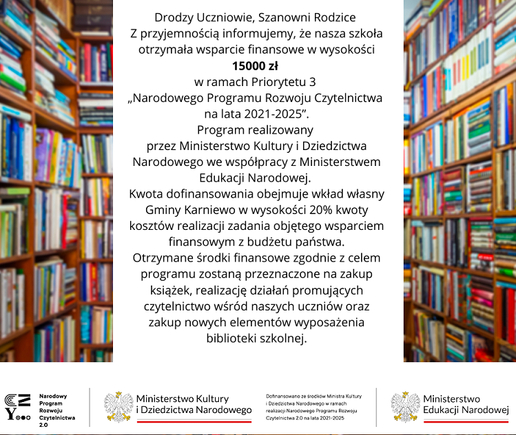 Wypożyczalnia książekOtwarte dla uczniów przez cały rok szkolny.