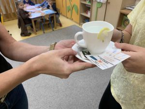 Na koniec spotkania złożyliśmy świąteczne życzenia, wręczyliśmy kartki świąteczne wykonane przez przedszkolaków i ich rodziców w ramach akcji charytatywnej Łączymy pokolenia przez świąteczne życzenia oraz przekazaliśmy pyszne ciasta i paczkę słodkości dla wszystkich pensjonariuszy.