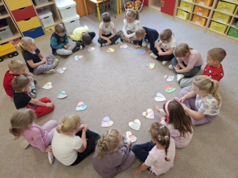 realizowaliśmy projekt „Tydzień o budowaniu relacji”, którego celem było rozwijanie empatii wśród dzieci oraz kształtowanie bezpiecznego środowiska już od najmłodszych lat. Na zajęciach, w grupach, wspólnie zastanawialiśmy się nad tym, co pomaga w byciu dobrym kolegą czy koleżanką.