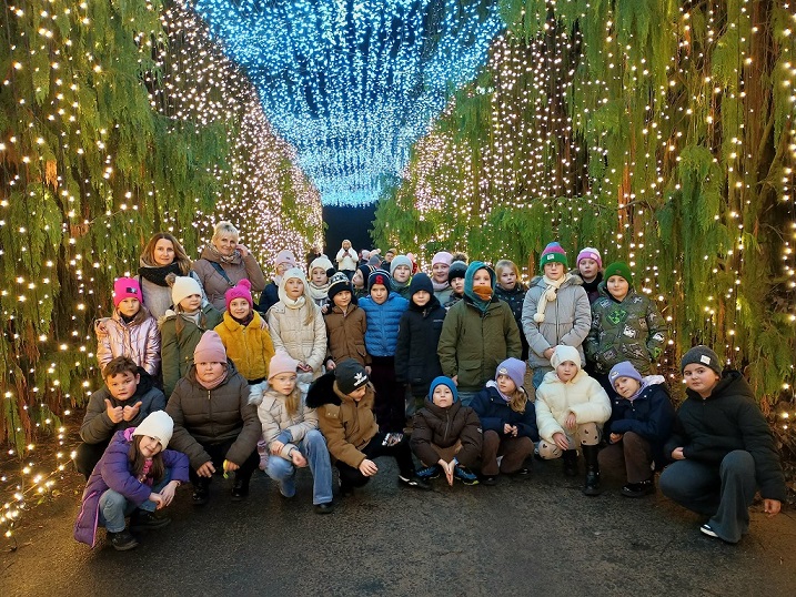 Po dużej dawce nauki przyszedł czas na odrobinę magii. Udaliśmy się do Ogrodu Świateł w Powsinie, gdzie czekały na nas przepiękne iluminacje inspirowane bajką „Piękna i Bestia”. Spacer wśród świetlnych dekoracji był niezapomnianym przeżyciem i idealnym zakończeniem dnia.