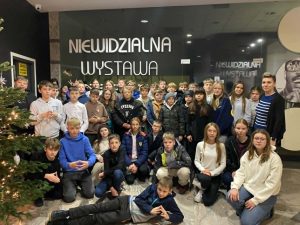 Drugim punktem programu była wizyta w „Niewidzialnej wystawie”. Dziewczęta i chłopcy wczuli się tam w sytuacje osób niewidomych. Było to pouczające doświadczenie i przygoda.